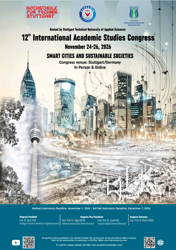 XII. Academic Studies Congress (ASC-2026/FALL) will be held between 24-26 November 2026 under the hosting of Stuttgart Applied Sciences University.